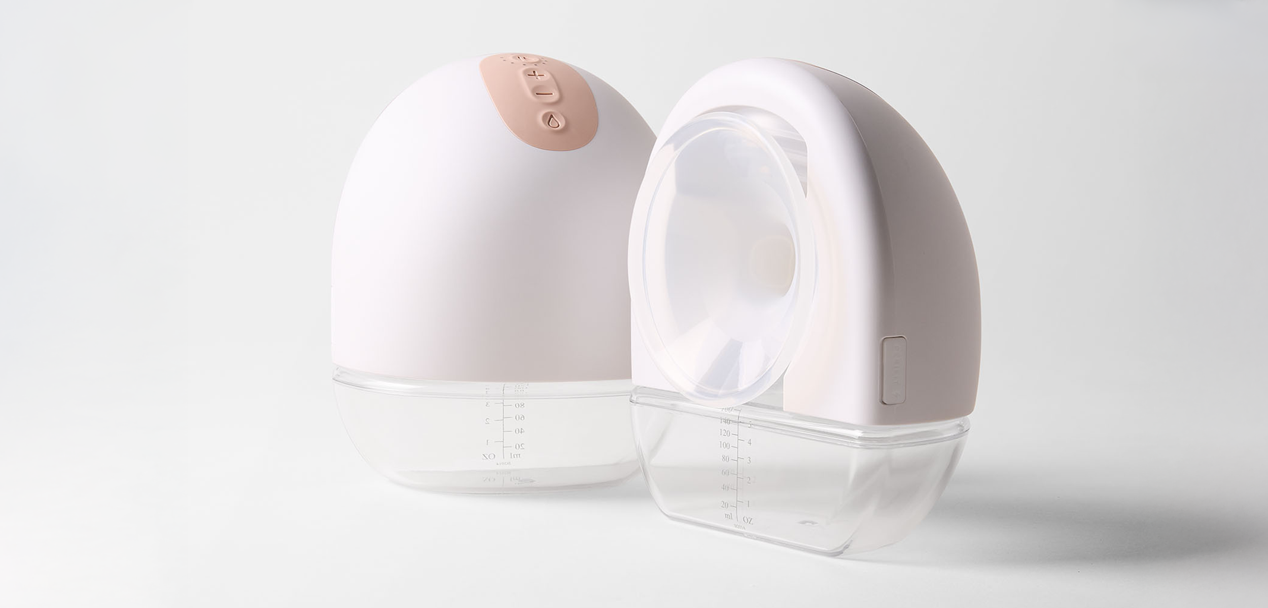 The casing contains a powerful motor, unique noise-cancellation technology, automatic milk level detection, and Bluetooth connectivity to track, control, and optimize the breast pump from the free app.